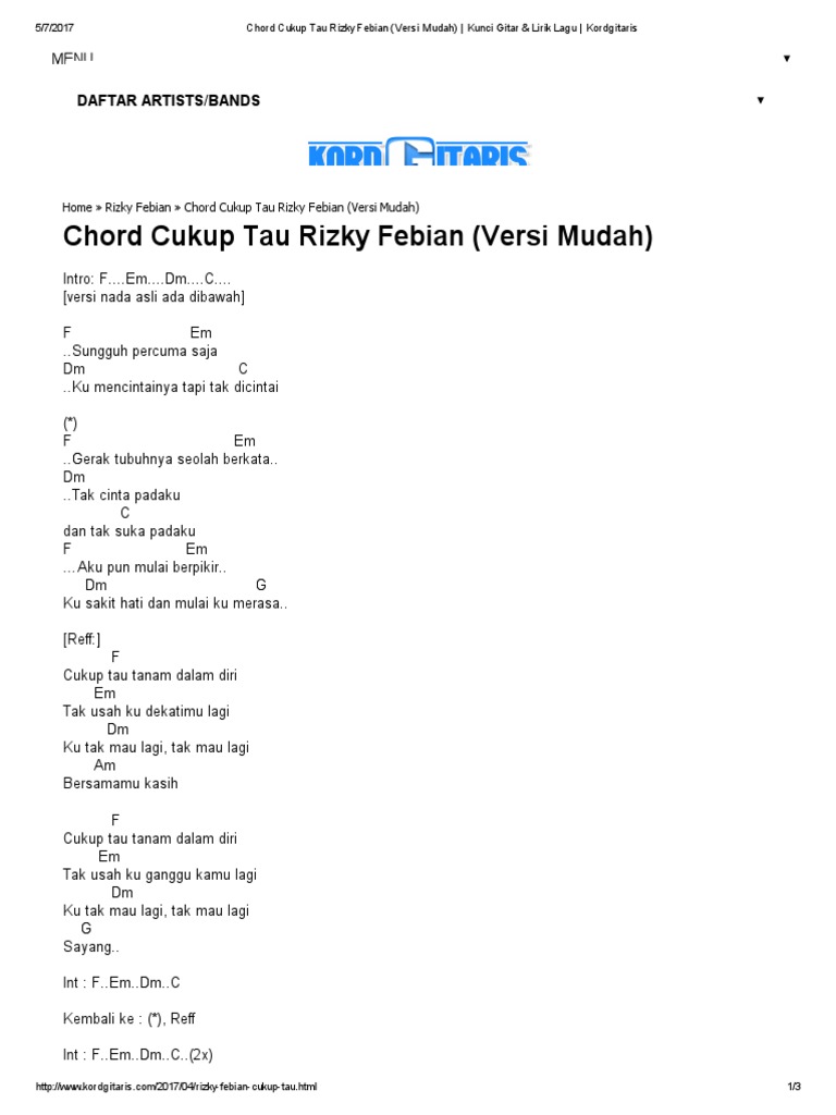 Cukup Tau Tanam Dalam Diri - Bm7 ku tak mau lagi, tak mau lagi.