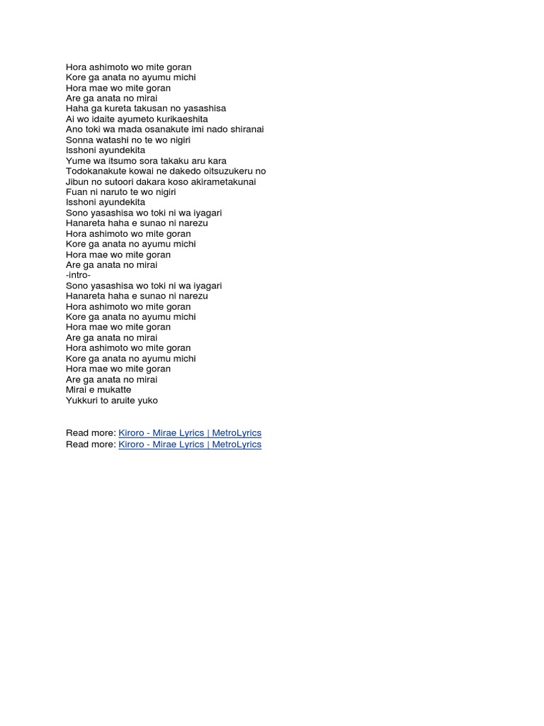 Kiroro Mirae - Kiroro mirae lyrics & video :