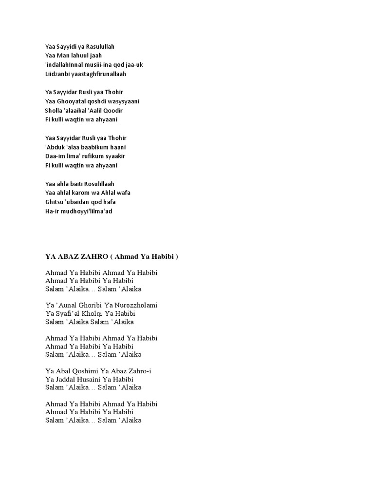 Lagu Ahmad Ya Habibi Lirik / Ahmad ya habibi songwriter :
