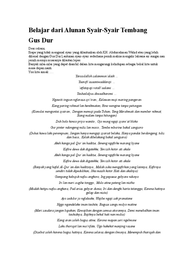 Download Teks Syiir Gusdur Sholawat nabi syiir tanpo waton oleh gusdur ( abdurrahman wahid ),mengenang jasa beliau dalam kehidupan indonesia.